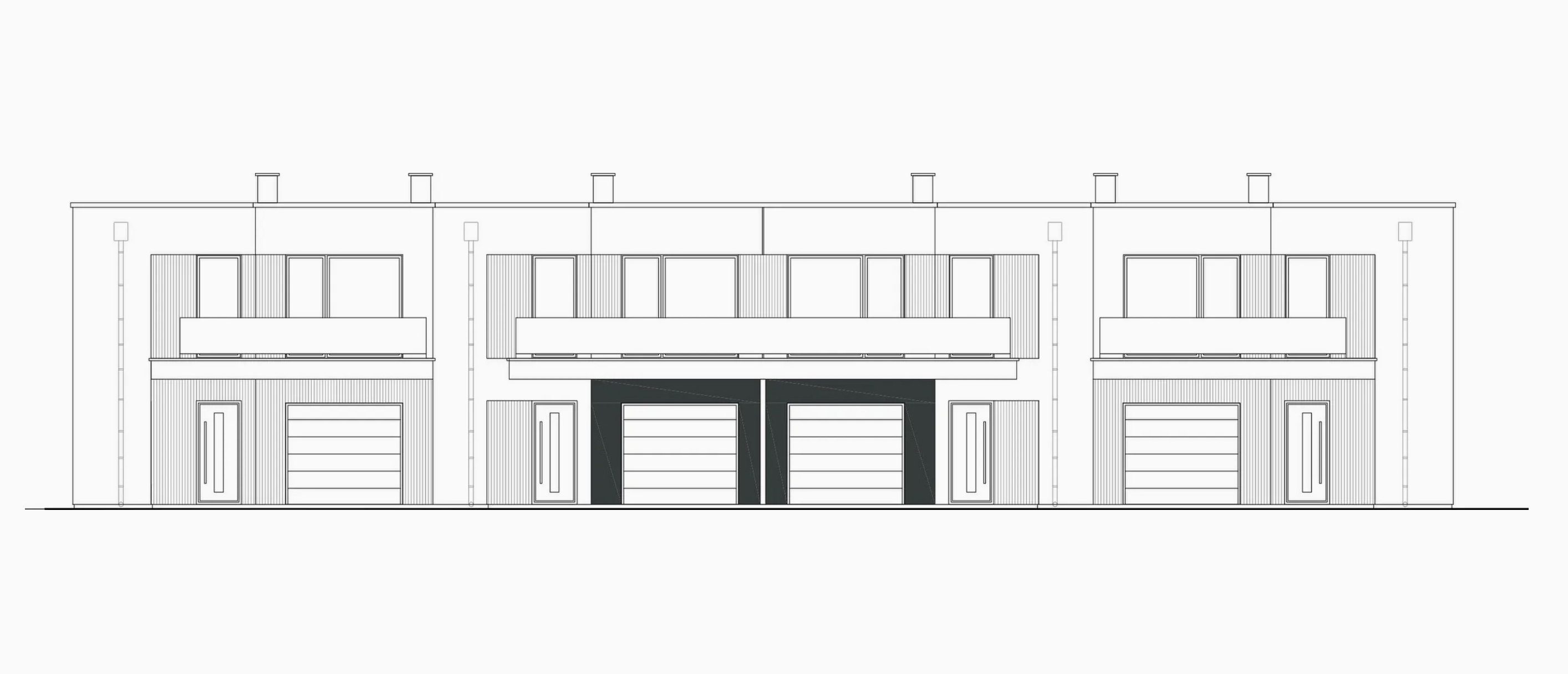 11 nowoczesnych domów z garażem w zabudowie szeregowej.